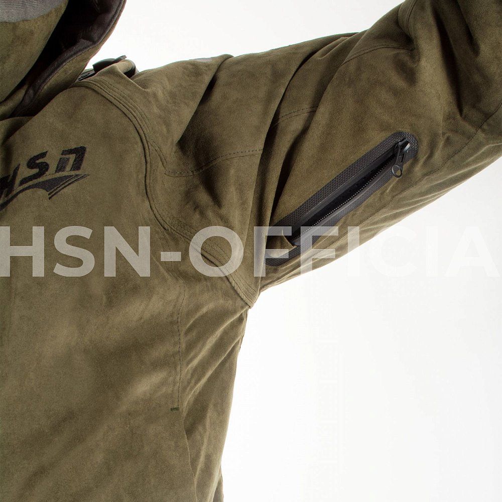 Куртка прямого кроя застегивается на молнию с двумя бегунками, с внутренней ветрозащитной планкой. Капюшон с плотным козырьком регулируется по овалу лица. На плечах противоскользящая стропа для ружейного ремня и т.д. Спинка куртки удлинена для защиты от ветра.